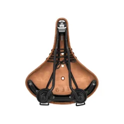 Classically sprung for supreme comfort, and with a shorter nose for women and smaller riders, the leather of the B67 Softened Short is treated for immediate comfort out of the box. An ideal saddle for urban cycling or casual touring in the upright riding posture, whether on a city bike, Dutch-style bike, cargo bike or other upright touring bicycle, the B67 is made with a single rail for use with standard, micro-adjustable seatposts, and vegetable tanned leather for flexible, hammock-like performance that will age beautifully over time, moulding to the shape of the rider. Finished with laces for saddle tensioning, machined rivets and a black undercarriage.