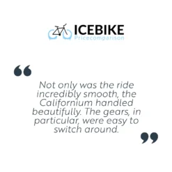 ‘Not only was the ride incredibly smooth, the Californium handled beautifully. The gears, in particular, were easy to switch around.’ – Ice Bike