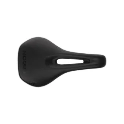 In the average female, the pubic symphysis (front cartilage connecting the two halves of the pelvis) is positioned lower than in a male pelvis, and the angle of the pubic bones towards each other is wider. Furthermore, mobility is higher in women, so when in the saddle, their pelvis often rocks further forwards. This can create high pressure in the genital area. The centre relief, which is positioned far at the front, as well as the wider saddle flanks help distribute the pressure of the sitting area.