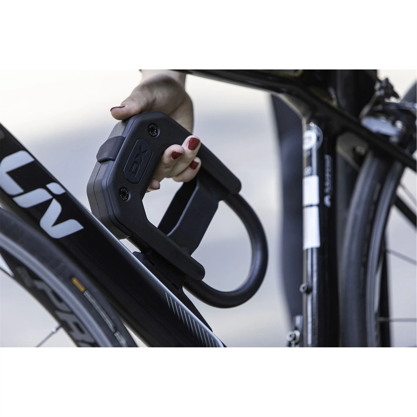Maximum security D lock with unique speed loading frame bracket for easy carry on your bike. The unique design of the DXF’s speed-loading frame bracket fits easily on to the bottle mount of most bike frames and uses Hiplok’s patented “CLIP+RIDE” system for a sturdy, rattle-free hold while cycling. The Hiplok DX features a 14mm premium hardened steel shackle with double locking anti-twist tabs built to withstand the toughest of attacks. One of the lightest Diamond Sold Secure locks on the market. Includes 3 x coded replaceable keys and Hiplok Lifetime Warranty guarantee *