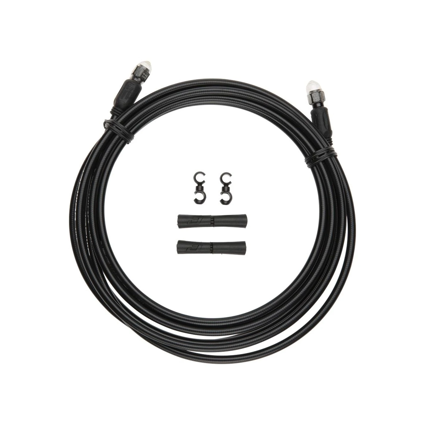 With more disc brake platforms on the market than ever before, fitting hydraulic hoses can be compLEX and frustrating. That’s why we developed the Quick-FitTM adapter system, a foolproof approach utilizing proven caliper-adapter technology from the motorcycle world. Pro hydraulic hoses make it safe and easy to dial in a perfect fit. A Kevlar weave surrounds the Tefzel inner liner, preventing any bulges due to heat building up or extreme braking pressure. Each hose comes with 2 pre-installed caliper-side universal couplers. Cut the hose to the correct length, attach the appropriate Quick-FitTM Adapter for the brake system (sold separately), and it’s ready to install. A Kevlar weave surrounding the liner prevents hose expansion due to heat buildup or extreme pressure. Each hose has 2 caliper-side universal couplers that connect to Jagwire Quick-FitTM Adapters (sold separately). Pro Hydraulic Hose kits are available in 12 colors and finishes. Black kits contain gloss black housing with silver logos; Stealth Black kits have matte black housing featuring black logos.