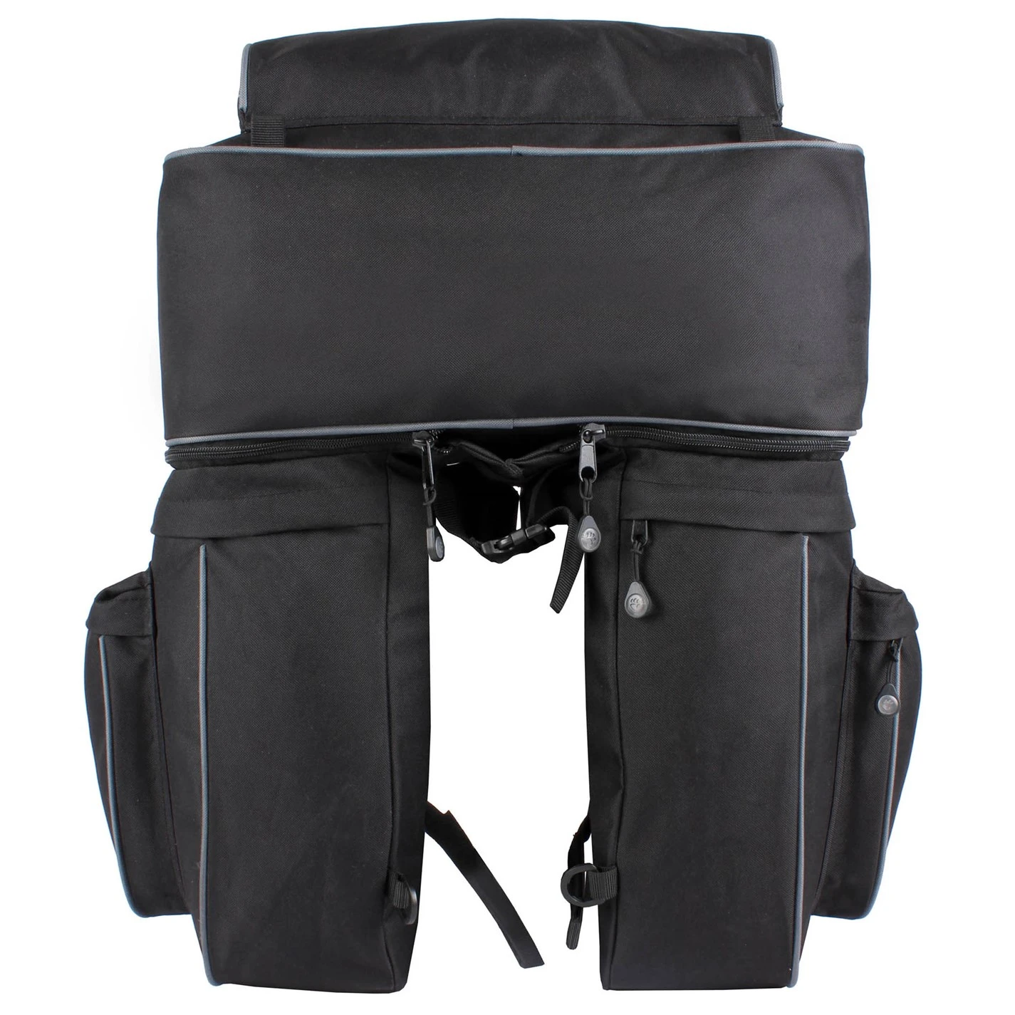 This Muddyfox Pannier Bag is ideal for commuters or touring. It is designed to carry your essentials, kit and cycling gear, while the tool free installation gets you up and running quicker. It has a large zip up expandable compartment to the top plus two zip pockets to the sides, security straps, reflective detailing and Muddyfox branding to finish.