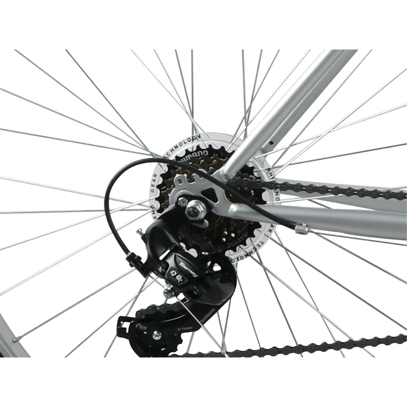 - Rear Derailleur: Shimano Tourney TY300B, 6-Speed